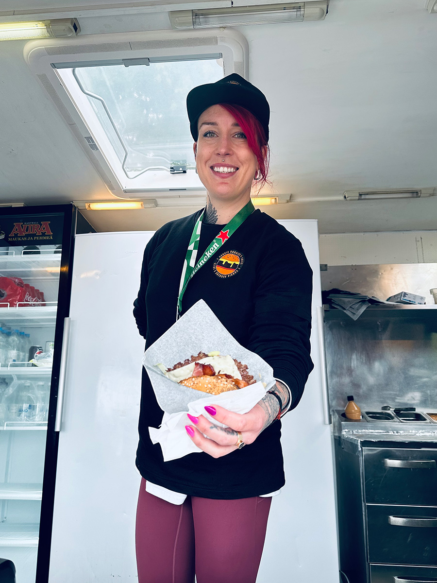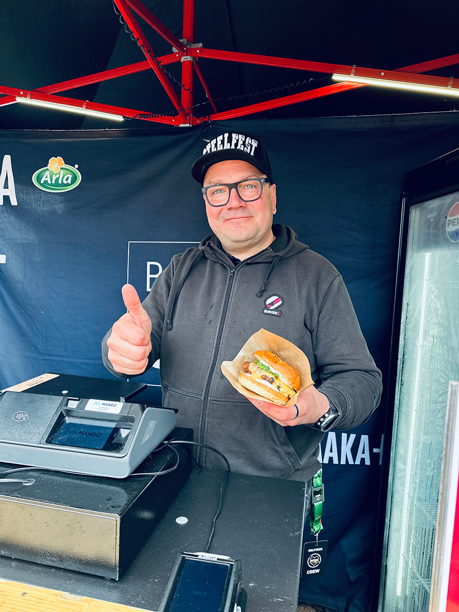 Yrittäjä Mika Salolainen kertoi, että Burger5 on ollut burgerifestareilla mukana kaikkina vuosina eli nyt jo kuudetta kertaa.