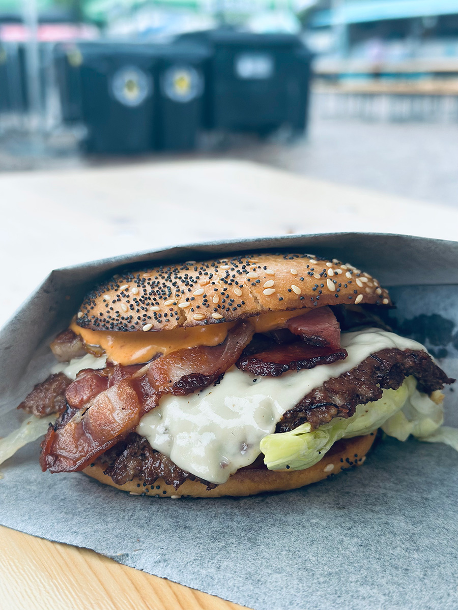 5-vuotias raumalainen 2 Kundia Burgers & Fries sijoittui paras burgeriravintola -kisassa sijalle 27. Heiltä maistoimme ravintolan klassikkoa, pekoniburgeria, jossa oli rapsakka Roslundin smash-pihvi ja ohut hyvä sämpylä. Pekonihampurilainen oli ylipäänsä oikein miellyttävä kokonaisuus, joka maistui tasapainoiselta ja täyteläiseltä.