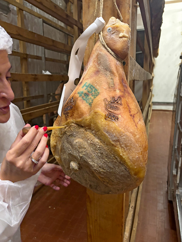Osa kinkuista päästetään myyntiin 16 tai 18 kuukauden jälkeen, mutta aidolle italialaiselle herkkusuulle kelpaa vain vähintään 24 kuukautta kypsytetty Prosciutto di Parma. Italiatar saattaa myös vaatia omat ohuet siivunsa kinkun tietystä osasta: oppaamme Michelle haluaa aina kinkun yläosaa, sillä muhkean alaosan liha on hänen makuunsa turhan kosteaa ja mehukasta.