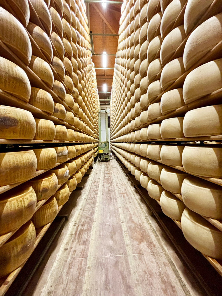 Villa Aiolan kypsytysvarastossa on noin 13 000 parmesaanikiekkoa. Kun yhden kypsän kiekon hinta on vähintään 600 euroa, tämä pientuottajan varasto on arvoltaan ainakin kahdeksan miljoonaa euroa.