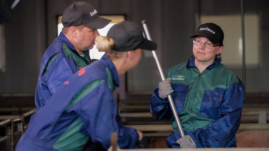 Snellman on hakenut aktiivisesti uusia tuottajia. Nykyisin yhtiöllä on yhteensä noin 2100 sika- ja nautatuottajaa. Kuvassa navetta-palaverissa Tapio Latvala, Tove Donner ja Heidi Latvala.